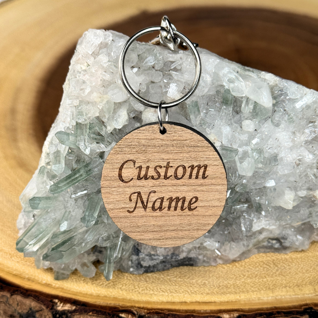 Featuring a detailed compass design with the phrase “Finding Your True North.” Each keychain is laser cut and engraved from 1/4-inch cherry wood. A custom name can be added to the back.